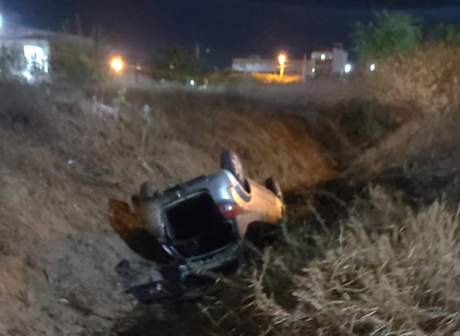 Motorista perde controle de carro e vai parar dentro de vala em Patos