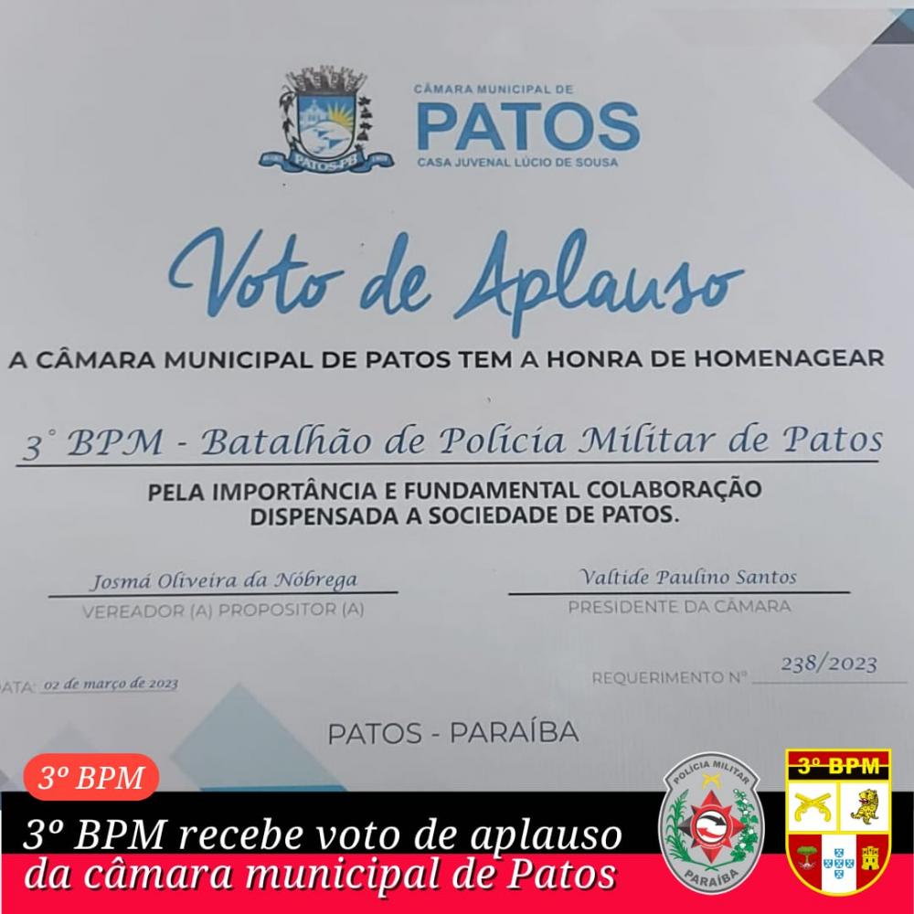 3º BPM recebe voto de aplauso da Câmara Municipal de Patos