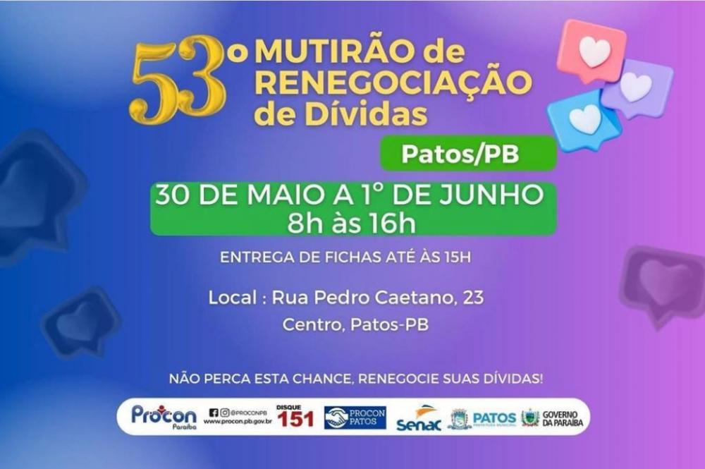 Procon/PB e Procon/Patos realizam o 53° Mutirão de Renegociação de Dívidas nesta terça, quarta e quinta