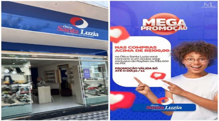 Ótica Santa Luzia, em Patos, anuncia Mega Promoção e o cliente pode ganhar um Rayban ou R$ 1000 no PIX