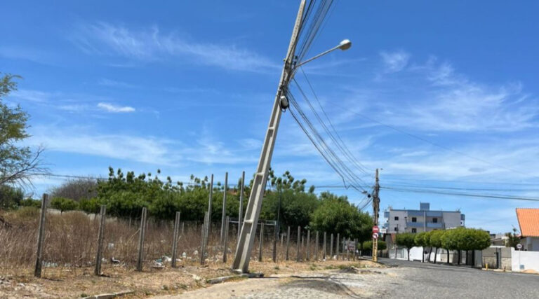 Energisa diz que poste que ameaça cair no Santo Antônio, em Patos, não é de sua responsabilidade