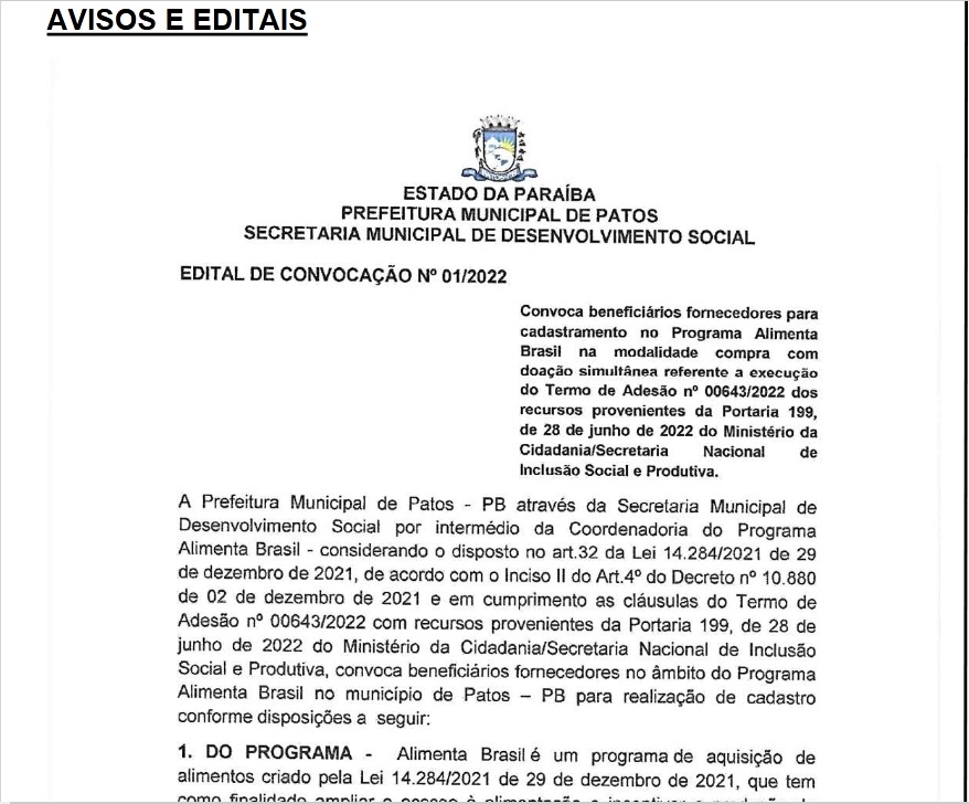 A data prevista para a licitação é dia 6 de outubro, às 9h, no Centro Administrativo Aderbal Martins, na sala de reunião da comissão permanente de licitação.
