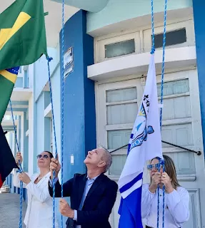 O cerimonial teve início com o hasteamento das bandeiras do Brasil, Paraíba e Patos ao som do Hino Nacional pela Filarmônica Municipal 26 de Julho.