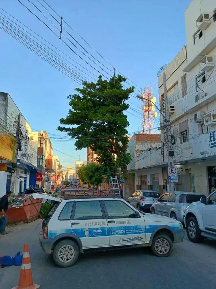 SEMADS realiza retirada preventiva de árvore com risco iminente no Centro de Patos