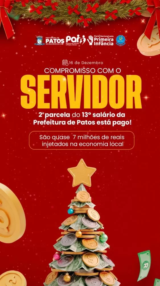 O pagamento em dia do 13º salário evidencia a responsabilidade fiscal da Prefeitura de Patos.