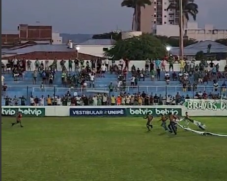 No intervalo da partida torcedores do Dinossauro invadiram o campo para pegar faixas de uma torcida organizada do Canário e iniciou-se a confusão.