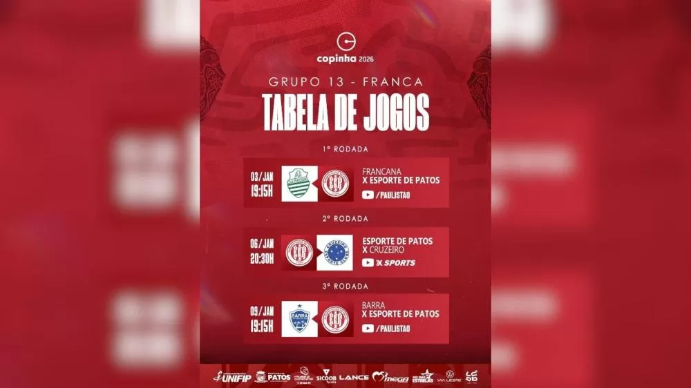 Esporte de Patos conhece tabela da Copinha 2026 em Franca
