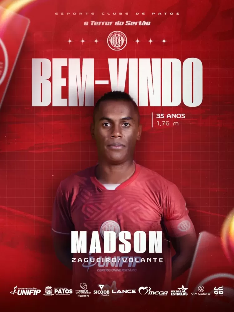 Esporte contrata Madson Marques, 35, para reforçar meio-campo no Paraibano 2026