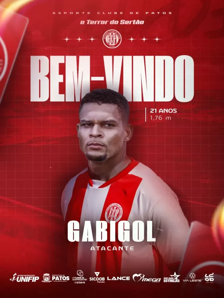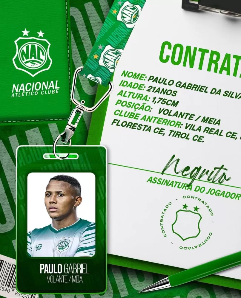 Nacional de Patos confirma a contratação do meio-campista Paulo Gabriel, o “Negrito”
