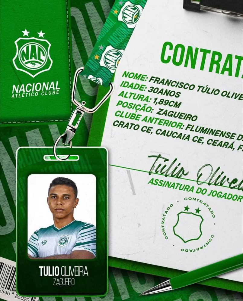 Nacional de Patos anuncia o zagueiro Túlio Oliveira para a temporada 2025