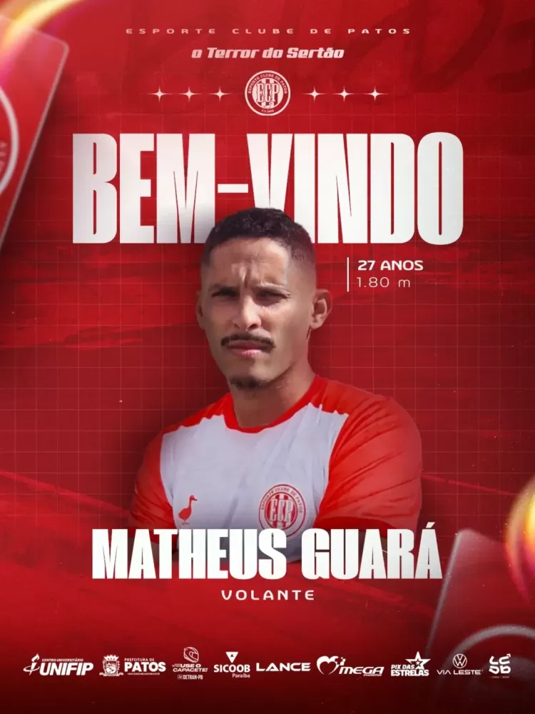 Matheus Guará retorna ao Nacional de Patos para o Campeonato Paraibano 2026