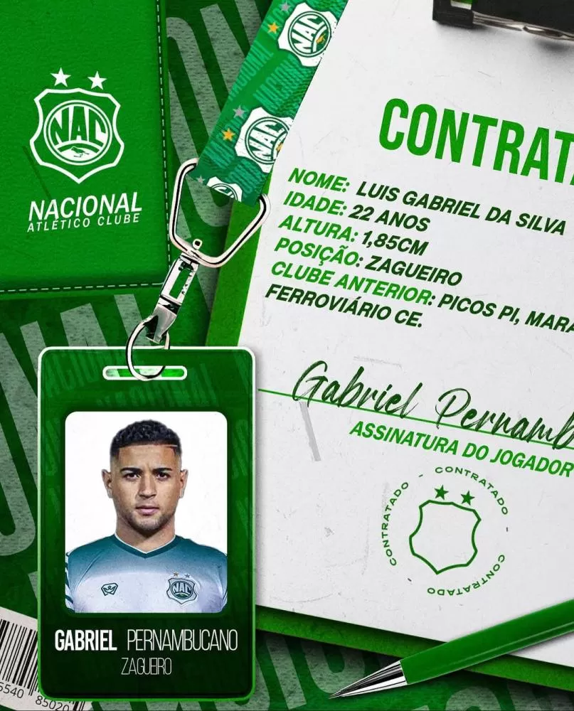 Nacional de Patos confirma contratação do zagueiro Gabriel Pernambucano