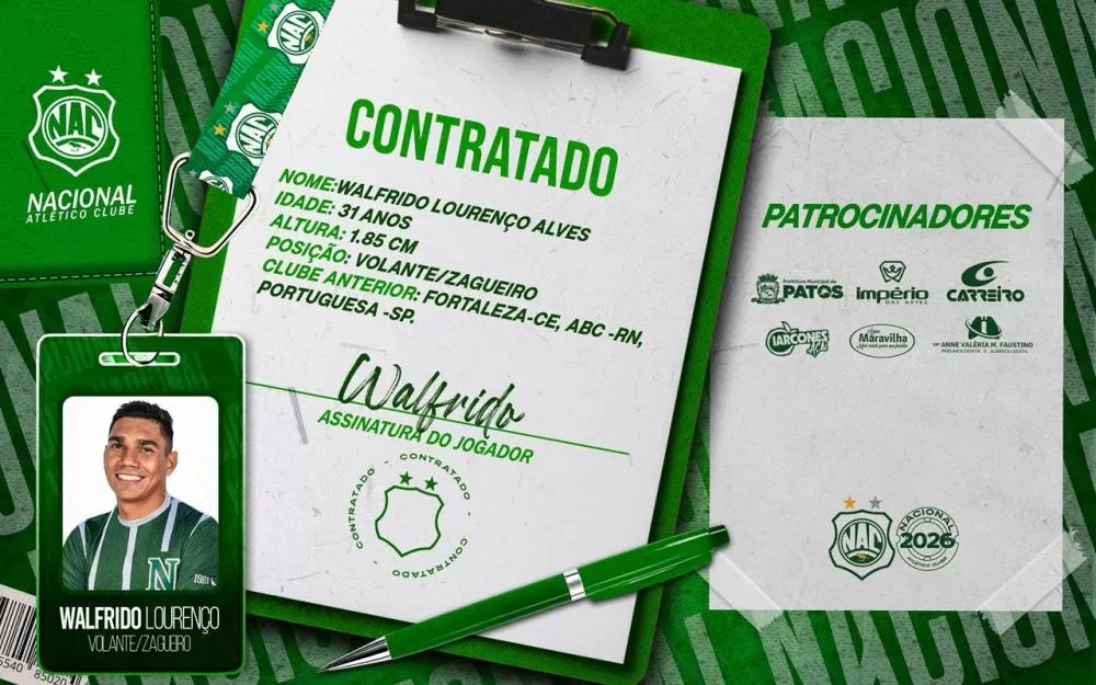 Nacional de Patos anuncia contratação do volante Walfrido para a próxima temporada