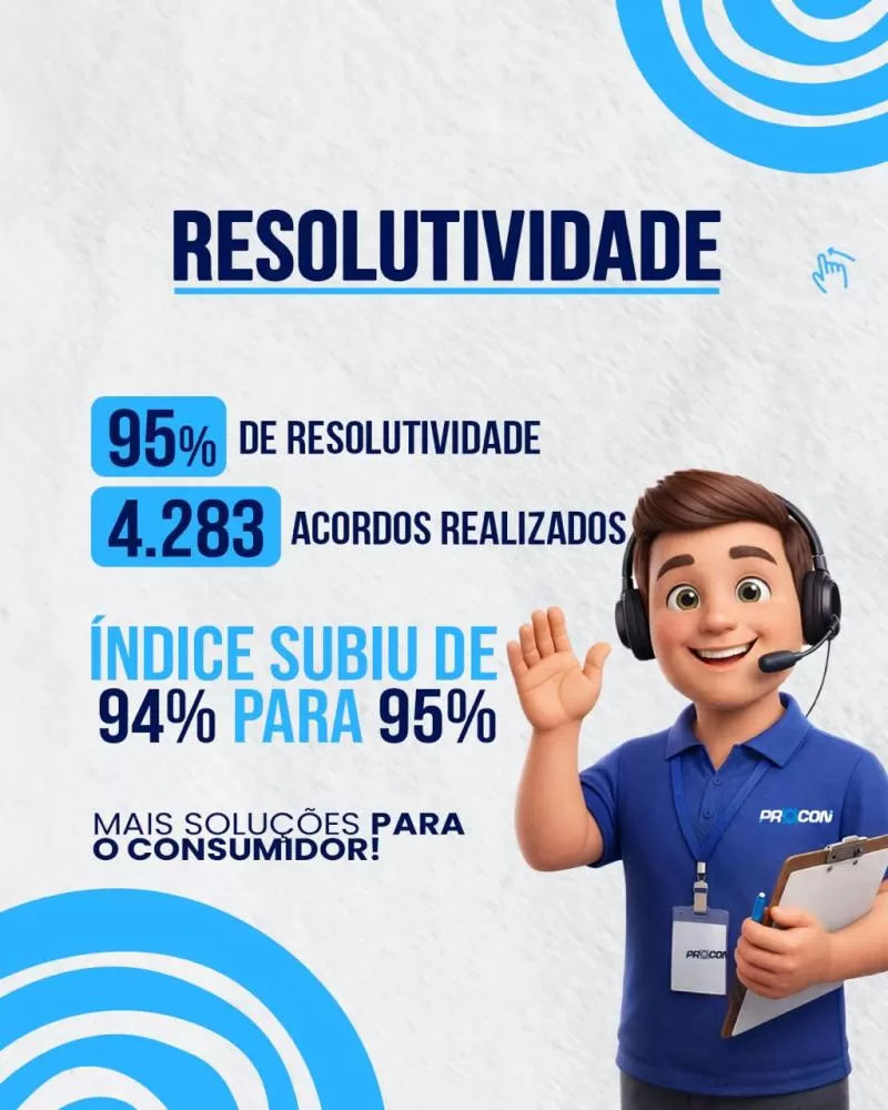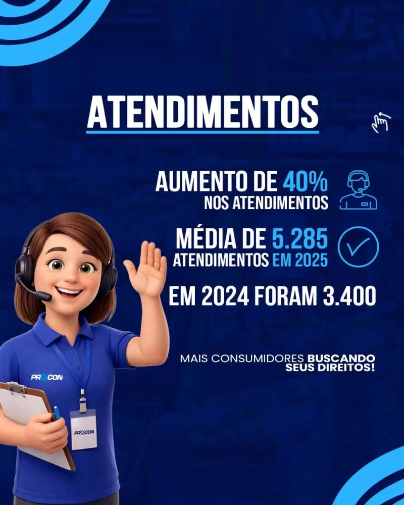 De acordo com o balanço, foram realizados uma média de 5.285 atendimentos ao público, que, quando comparado com o ano de 2024 (3.400 atendimentos), houve um aumento aproximado de 40%. Já relacionado às resolutividades, o Procon apresentou o índice de 94% para 95%, totalizando 4.283 acordos realizados no Procon Municipal.