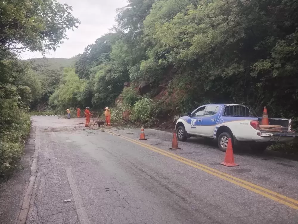Além do guincho, retroescavadeiras e caçambas foram empregadas na retirada do material acumulado. Cones e sinalização foram instalados ao longo do trecho sinuoso da serra, enquanto equipes trabalharam na contenção e limpeza da área afetada.