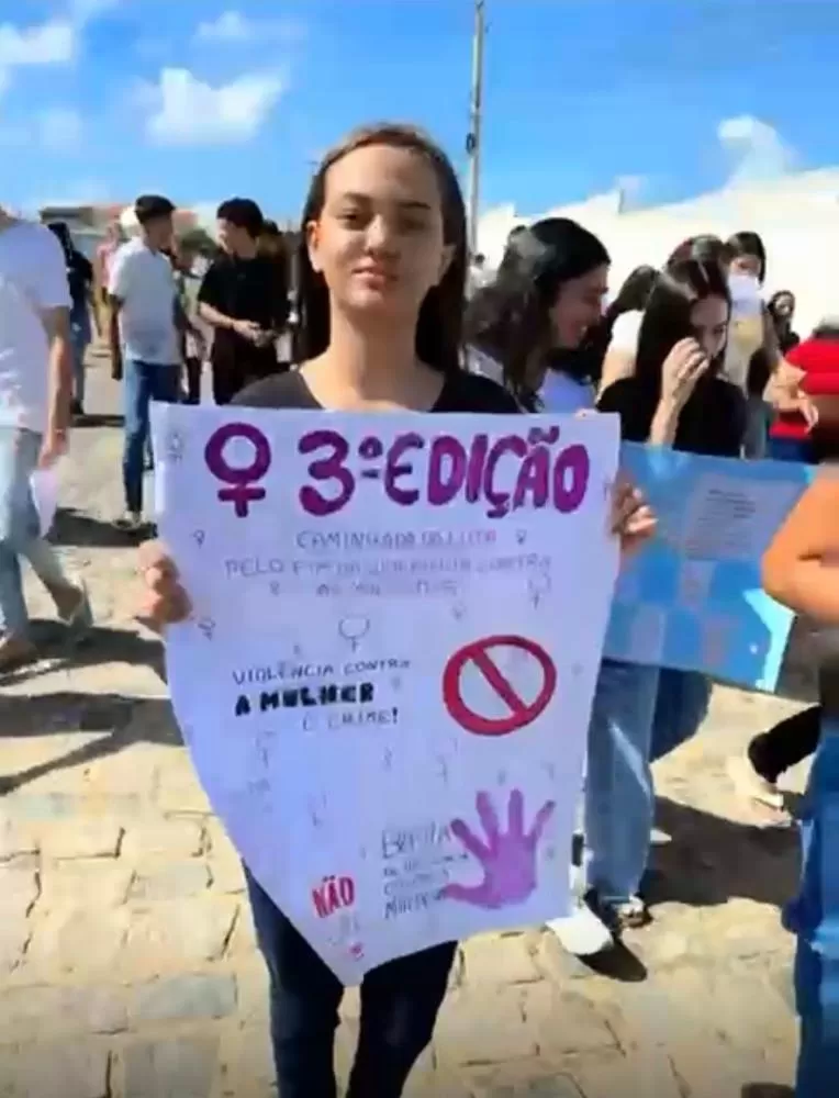 Durante a caminhada que chamou atenção dos moradores do bairro e de pessoas que circulavam pela localidade, a professora lembrava com palavras de ordem que "É preciso que cada mulher se conscientize de seu papel, lute e não se cale. Essa é a reflexão que fazemos: somos tão importantes quanto os homens, mas muitas vezes nos deixamos levar pelo machismo e pelo autoritarismo masculino. É uma reflexão que trouxemos para os jovens, para os adolescentes da escola e para toda a sociedade."