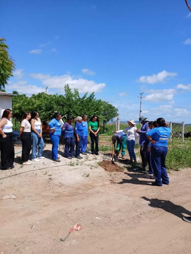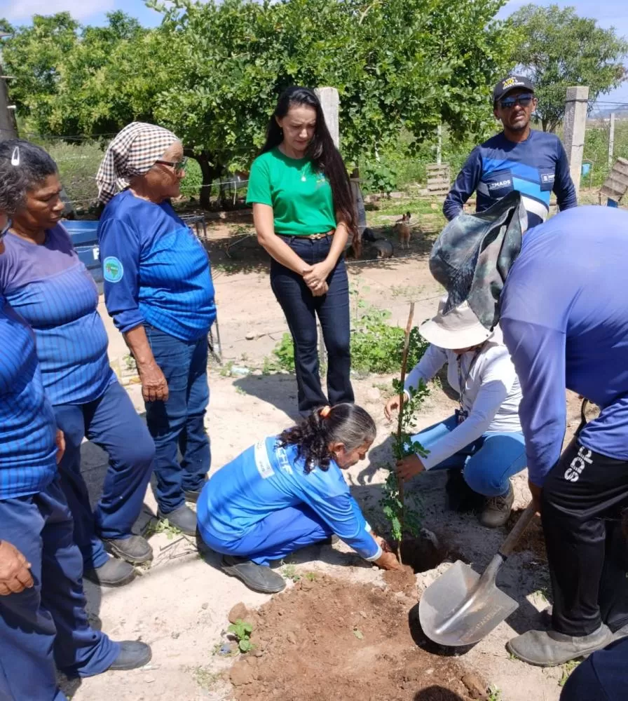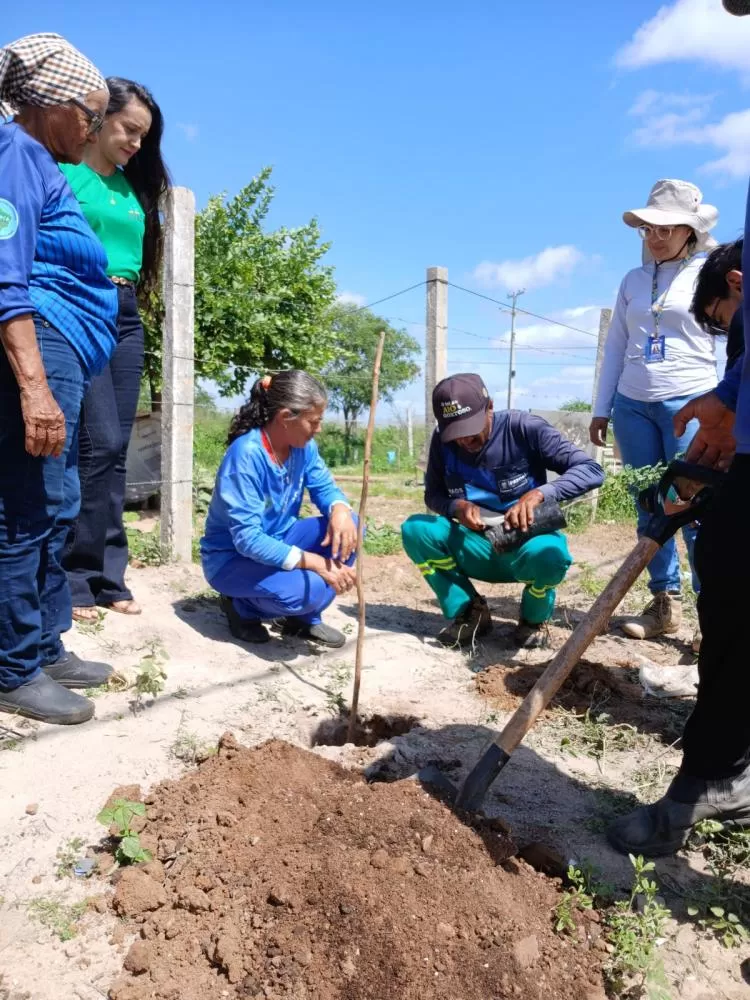 Também houve o plantio simbólico de mudas nativas da Caatinga. “Escolhemos espécies resistentes, como a pata-de-vaca e a catingueira, e fizemos o plantio junto com as mulheres da associação”, explicou a engenheira florestal Evanny Valéria.