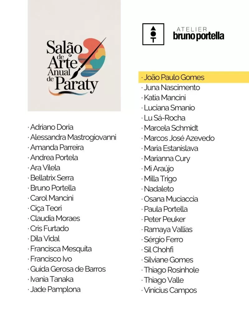 O artista plástico João Paulo Gomes, natural de Matureia e radicado em Patos, foi selecionado para participar do tradicional Salão de Arte anual de Paraty, um dos mais importantes eventos do segmento no país.
