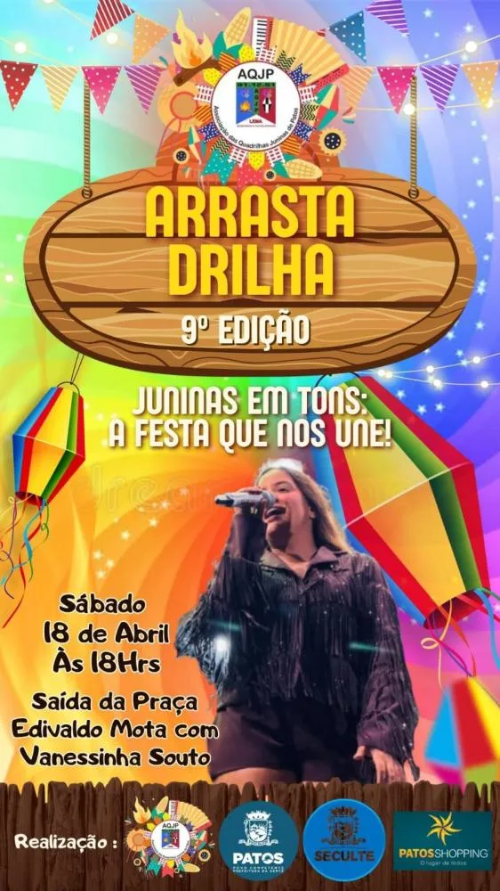 Promovido pela Associação de Quadrilhas Juninas de Patos, o Arrasta Drilha conta com o apoio da Prefeitura Municipal, por meio da Secretaria de Cultura, Turismo e Esporte de Patos, além do Patos Shopping.