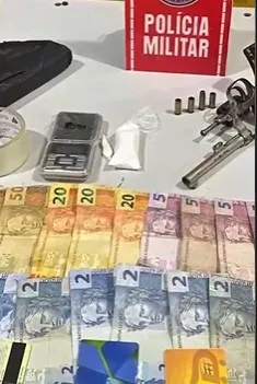 Um suspeito foi abordado no bairro Batalhão com substância semelhante à cocaína e munições. Na zona rural, os policiais encontraram um revólver calibre .32 na residência dele.