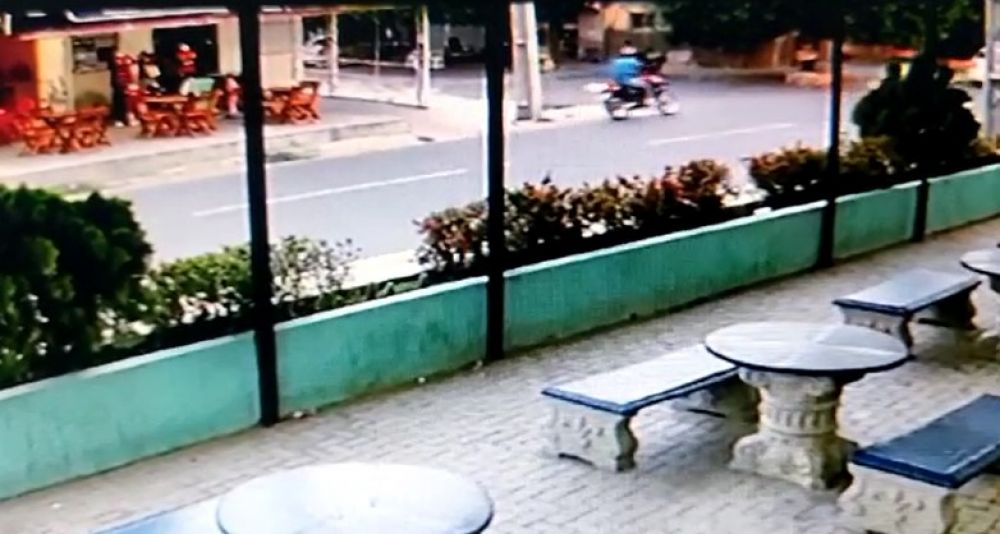 Uma câmara de segurança registrou a ação do bandido que desceu de um carro branco para praticar o crime. Até o momento a moto do professor não foi localizada.