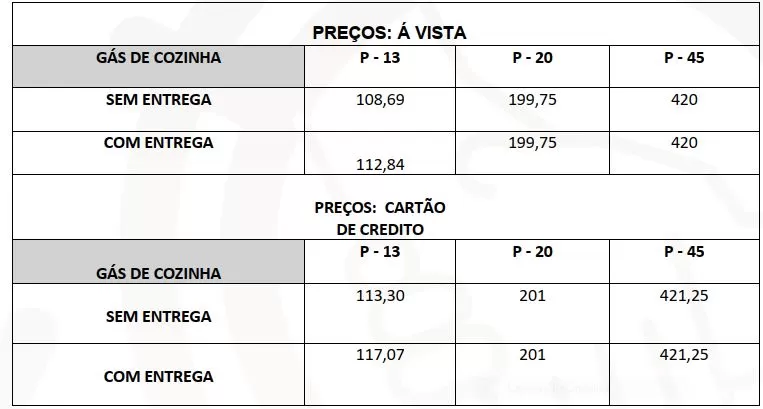 Já com relação à pesquisa de gás de cozinha, a pesquisa do Procon/Patos apontou que o gás P-20 teve uma redução de -2,40%, no pagamento à vista. No pagamento com cartão de crédito, a redução do valor foi de -3,37%.