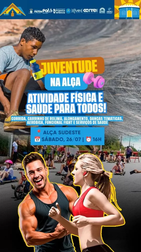 A Prefeitura de Patos, por meio da Secretaria Executiva de Juventude, realiza neste sábado, dia 26 de julho, a partir das 16h30, mais uma edição do projeto Juventude na Alça. O evento, que já se consolidou como uma iniciativa de promoção à saúde e integração social, acontece na Alça Sudeste e, desta vez, traz um toque de nostalgia com a tradicional corrida de carrinhos de rolimã.