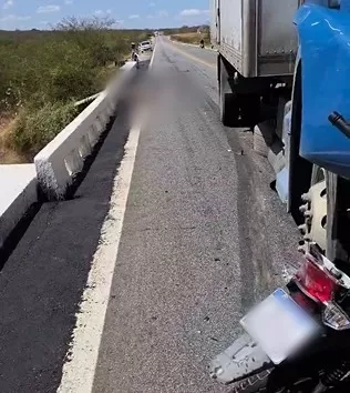 Na manhã deste sábado (2), por volta das 11h40, um grave acidente resultou na morte de um motociclista na BR-230, km 330, no município de Patos (PB), sentido São Mamede. A colisão frontal envolveu uma motocicleta Honda Biz 125, prata, ano 2024, com placa de Patos, e um caminhão baú Mercedes-Benz L1318, azul, ano 2008, com placas de Vinhedo-SP.