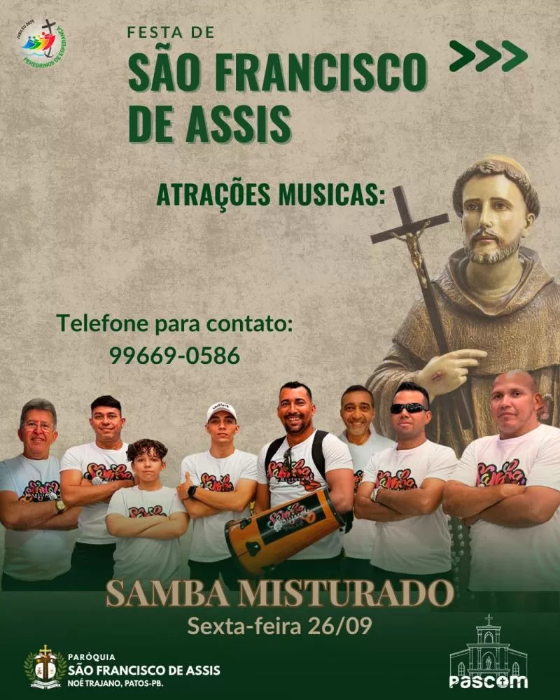 Começaram nesta quinta-feira (25) as festividades em homenagem a São Francisco de Assis, padroeiro do bairro Noé Trajano, em Patos. A abertura aconteceu com uma carreata que saiu da Capela de Nossa Senhora das Graças, no Jardim Europa, em direção à sede da Paróquia.