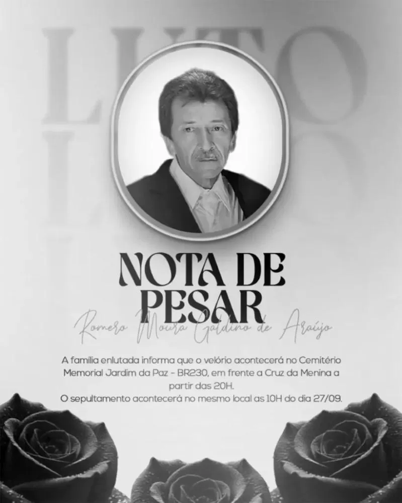 Faleceu na tarde desta sexta-feira, 26 de setembro, às 13h30, no Hospital do Bem, em Patos, o empresário Romero Moura Galdino de Araújo, de 67 anos. Ele lutava contra um câncer de próstata desde 2021, mas a doença evoluiu para metástase atingindo a coluna. Internado, sofreu uma parada cardiorrespiratória e não resistiu.