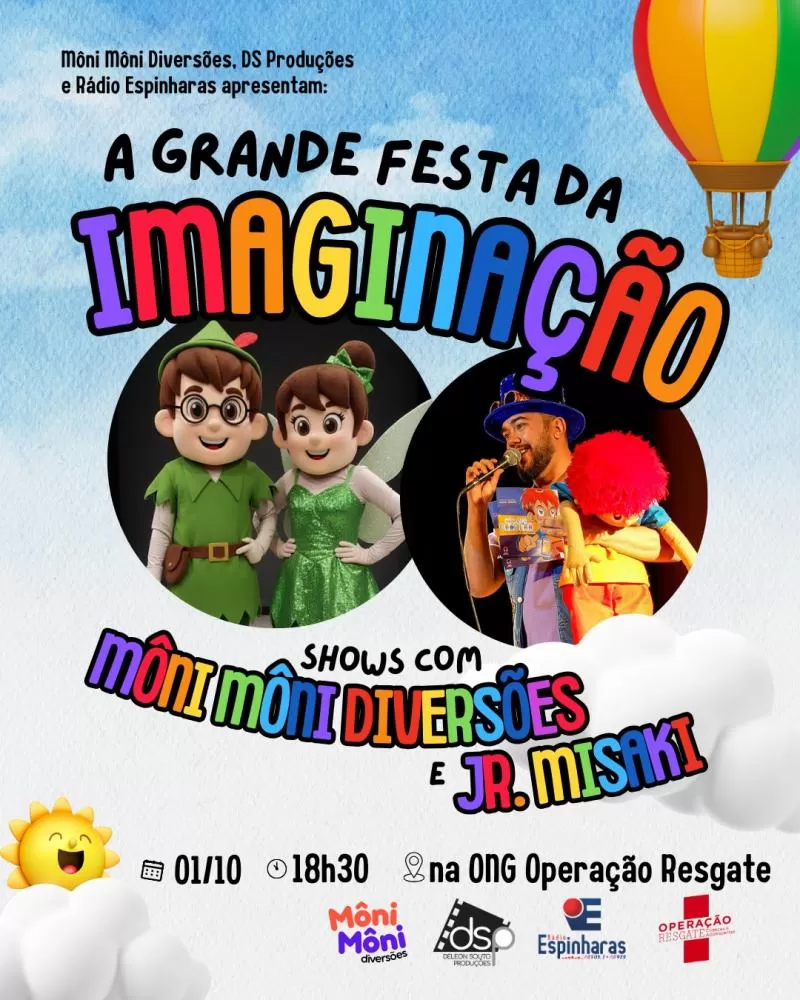 No dia 1º de outubro, às 18h30, a magia vai invadir a cidade de Patos-PB com o espetáculo “A Grande Festa da Imaginação” – um show beneficente que promete encantar crianças e famílias.