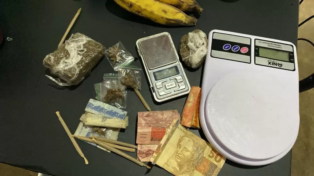 Com a suspeita, os policiais encontraram porções de maconha, saquinhos plásticos utilizados para embalar cocaína e dinheiro proveniente da comercialização de entorpecentes.