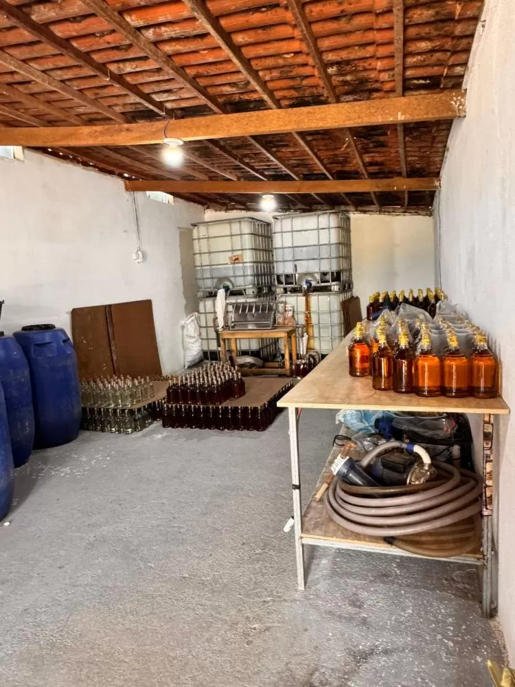 Durante a operação, conduzida pelo Grupo Tático Especial (GTE) da 12ª Delegacia Seccional, foram apreendidas mais de quatro mil garrafas de um produto suspeito de estar adulterado com metanol. A bebida, identificada como “São Tomé”, era produzida em uma garagem no distrito de mesmo nome, e o local foi interditado.