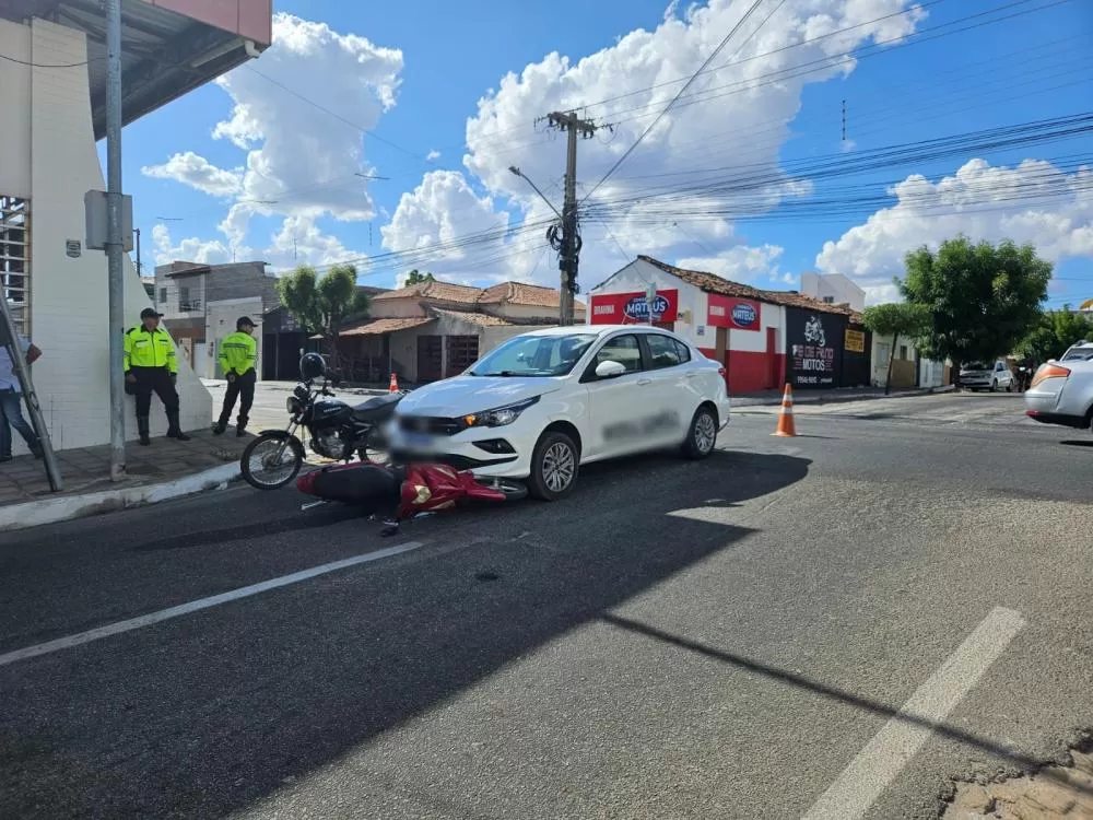 A colisão envolveu um carro de aplicativo, modelo Fiat Argo branco, e uma motoneta vermelha conduzida por uma jovem, que levava outra passageira. De acordo com informações preliminares, um dos veículos teria avançado o sinal vermelho, provocando o impacto lateral.