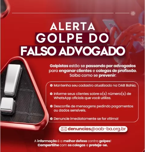 A prática, além de causar prejuízos financeiros, coloca em risco a credibilidade da advocacia e do próprio sistema de justiça, o que torna urgente a adoção de medidas eficazes de segurança digital e conscientização da população.