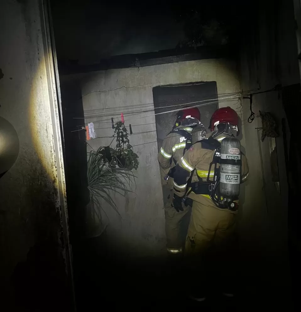 Ao chegarem ao local, os bombeiros constataram que o fogo estava concentrado em um cômodo nos fundos da casa. A rápida atuação das guarnições impediu que as chamas se espalhassem para outros ambientes.