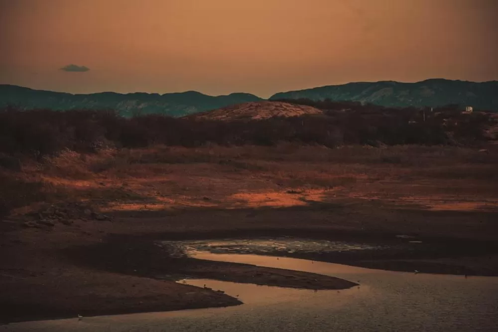 A paisagem árida que toma conta da Barragem da Farinha, em Patos, expõe de forma contundente a gravidade da crise hídrica que atinge a região das Espinharas. As fotografias feitas pelo repórter fotográfico Aloísio Abrantes revelam um cenário dramático: a água recuou a níveis históricos, deixando vastas áreas de solo rachado onde antes havia espelho d’água e transformando o manancial em um corredor estreito cercado por terras secas.