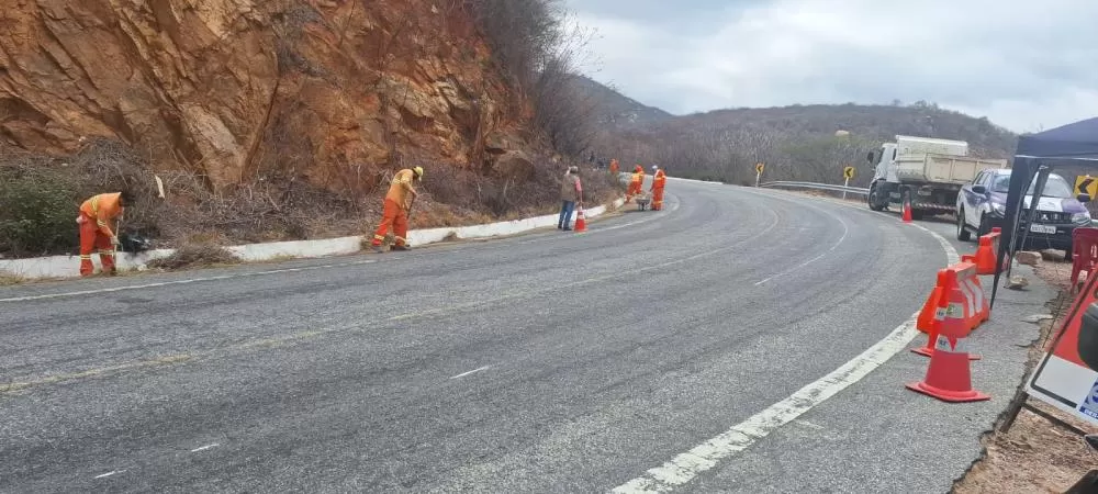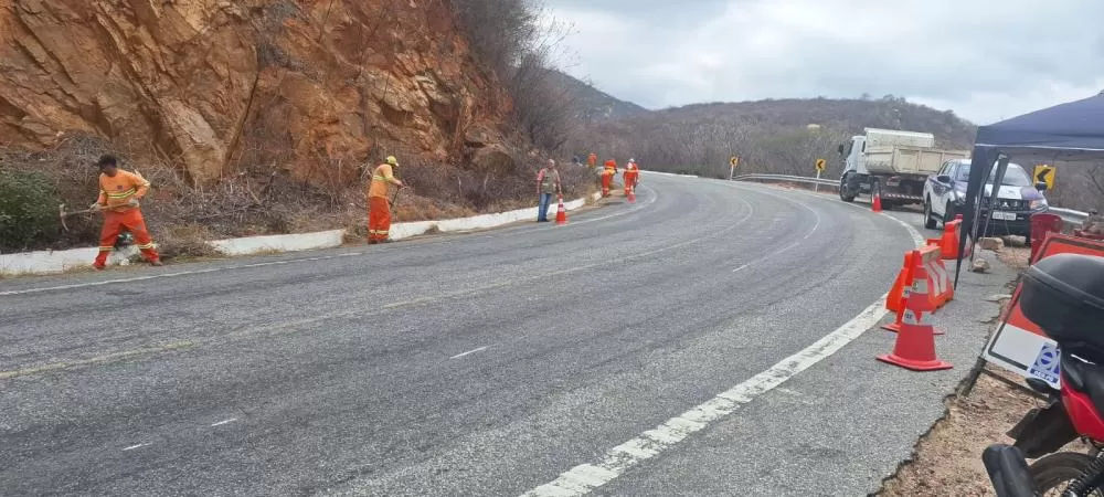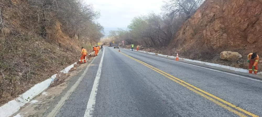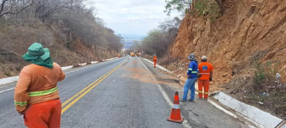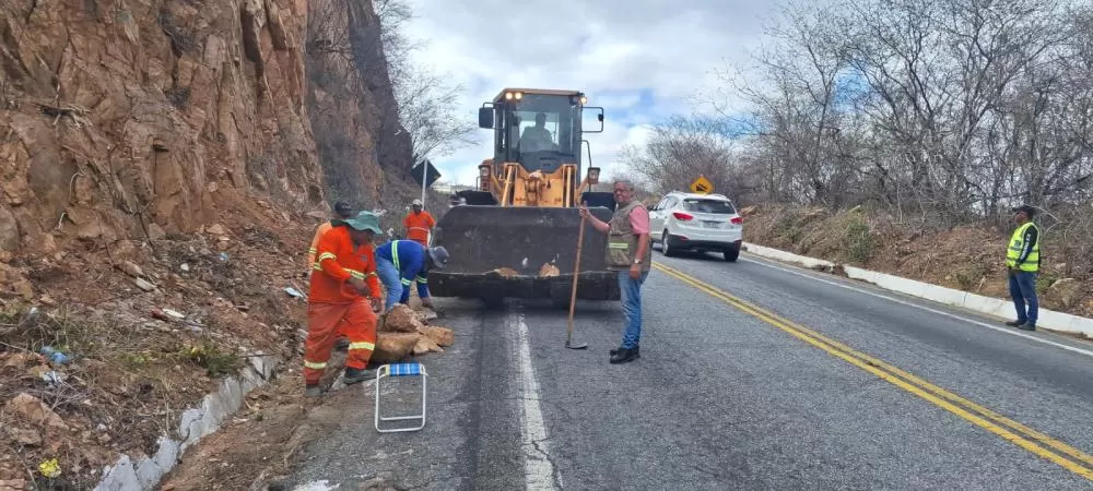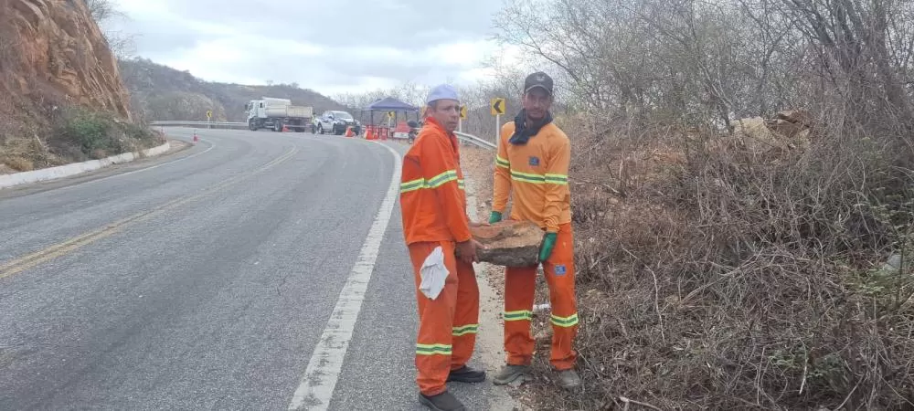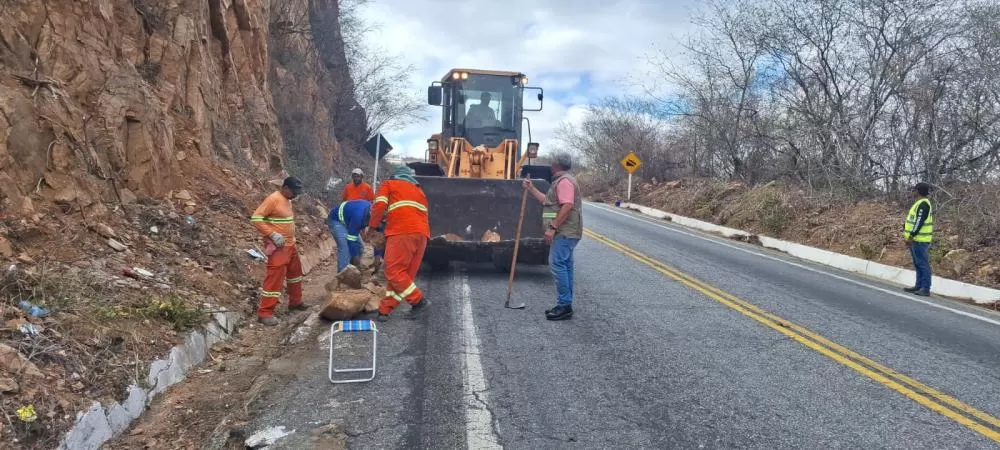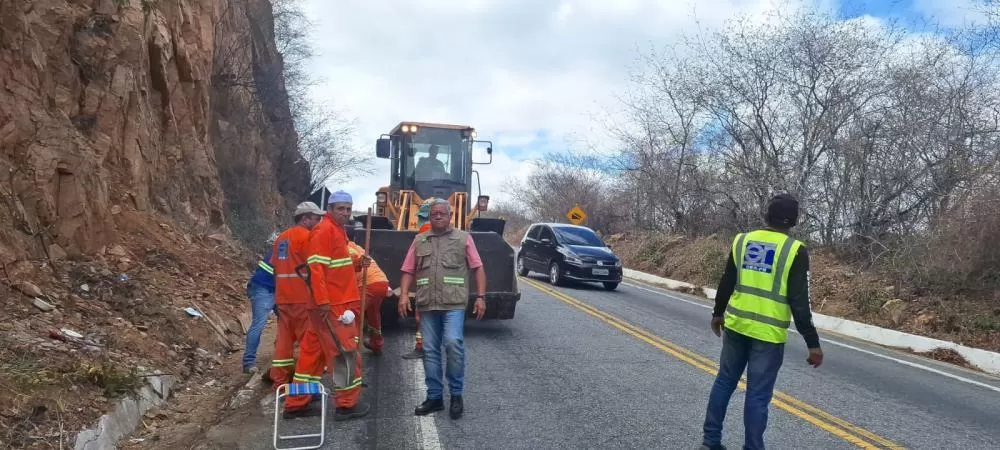 De acordo com o chefe do DER em Patos, Madiel Conserva, os trabalhos começaram por volta das 6h e envolvem o uso de maquinário pesado, como uma Enchedeira, para a remoção das pedras de maior porte. Já o material menor está sendo retirado manualmente, devido às dificuldades de manobra no trecho estreito da serra. “Aqui o tráfego é intenso e cruzar máquinas na pista é complicado. Por isso, todo o cuidado é necessário”, destacou.