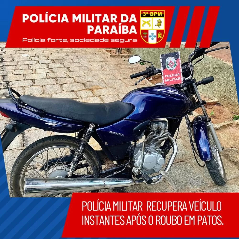 Polícia Militar recupera motocicleta instantes após o roubo, em Patos