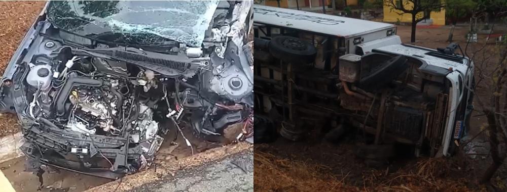 VÍDEO: Acidente entre carro e caminhão deixa uma pessoa gravemente ferida, no Sertão da PB