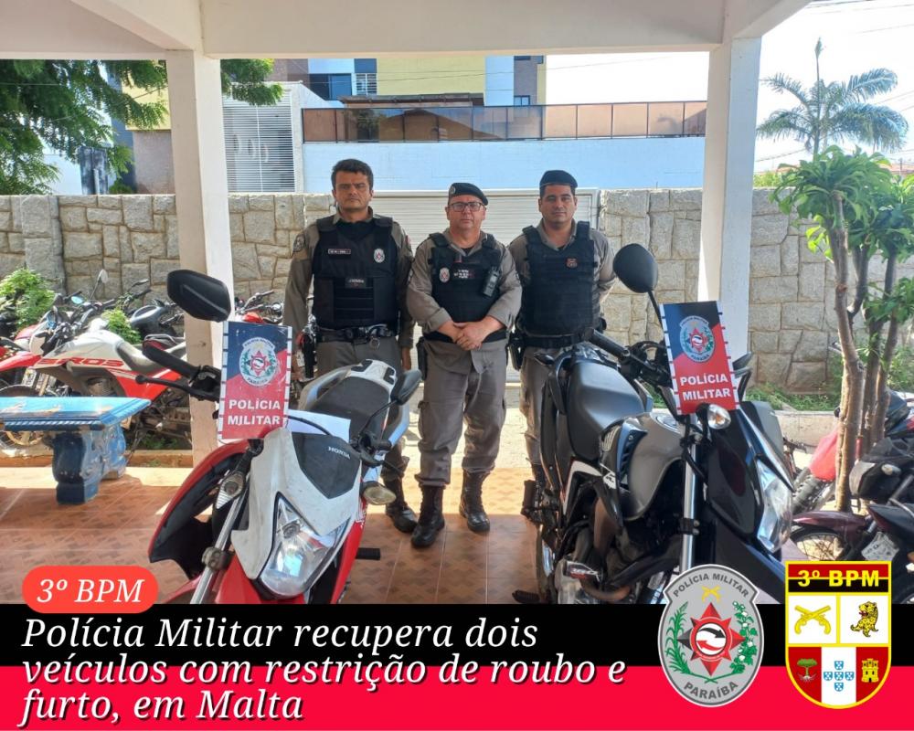 Polícia Militar recupera dois veículos com restrição de roubo e furto, em Malta