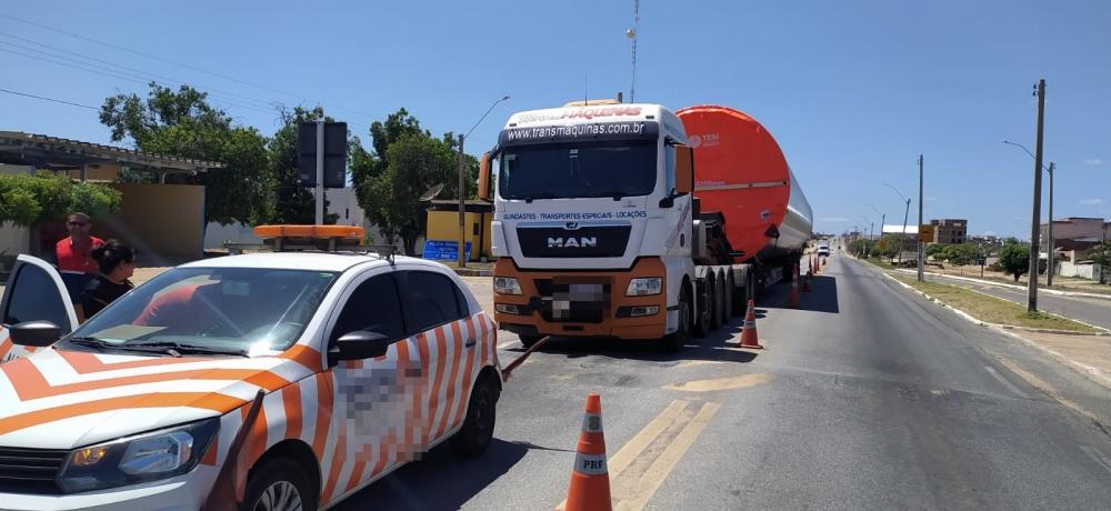 PRF prende motorista de carreta embriagado transportando uma torre eólica em Pombal