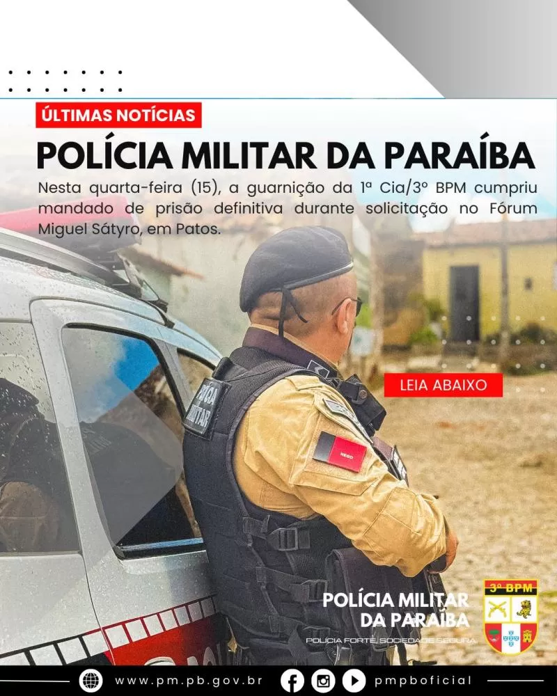 A ordem judicial, expedida pela 2ª Vara Mista de Patos, refere-se a condenação por ameaça.
