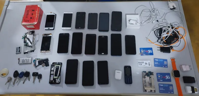 A polícia informou que na localidade, os agentes também apreenderam facas, munições, uma capa de colete e porções de drogas.