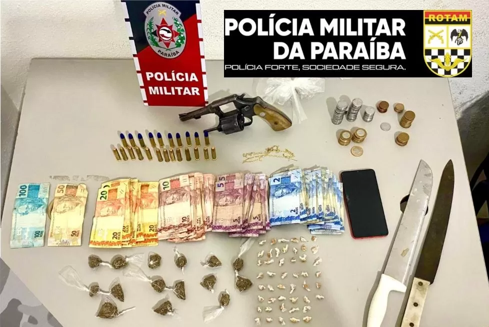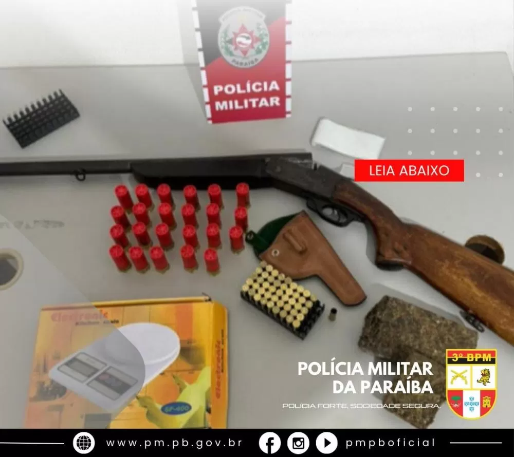 Polícia Militar apreende arma, drogas e prende homem na Rua do Meio, em Patos